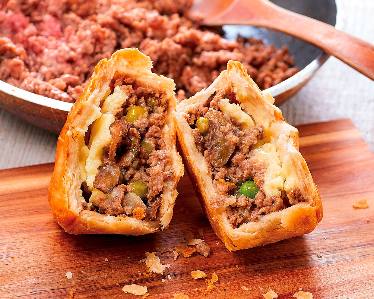 新鮮な野菜とマッシュポテトを使った定番ミートパイ。イギリスでは羊のひき肉を使用しますが、アメリカ風に牛肉100%の挽肉を贅沢に使用しています。