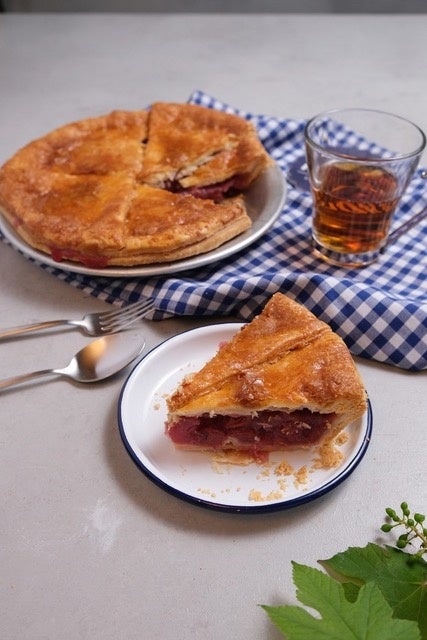 フレッシュチェリーをふんだんに使ったフィリングが、サクサクのクラスト生地の中にたっぷりと詰まっている甘酸っぱいパイです。