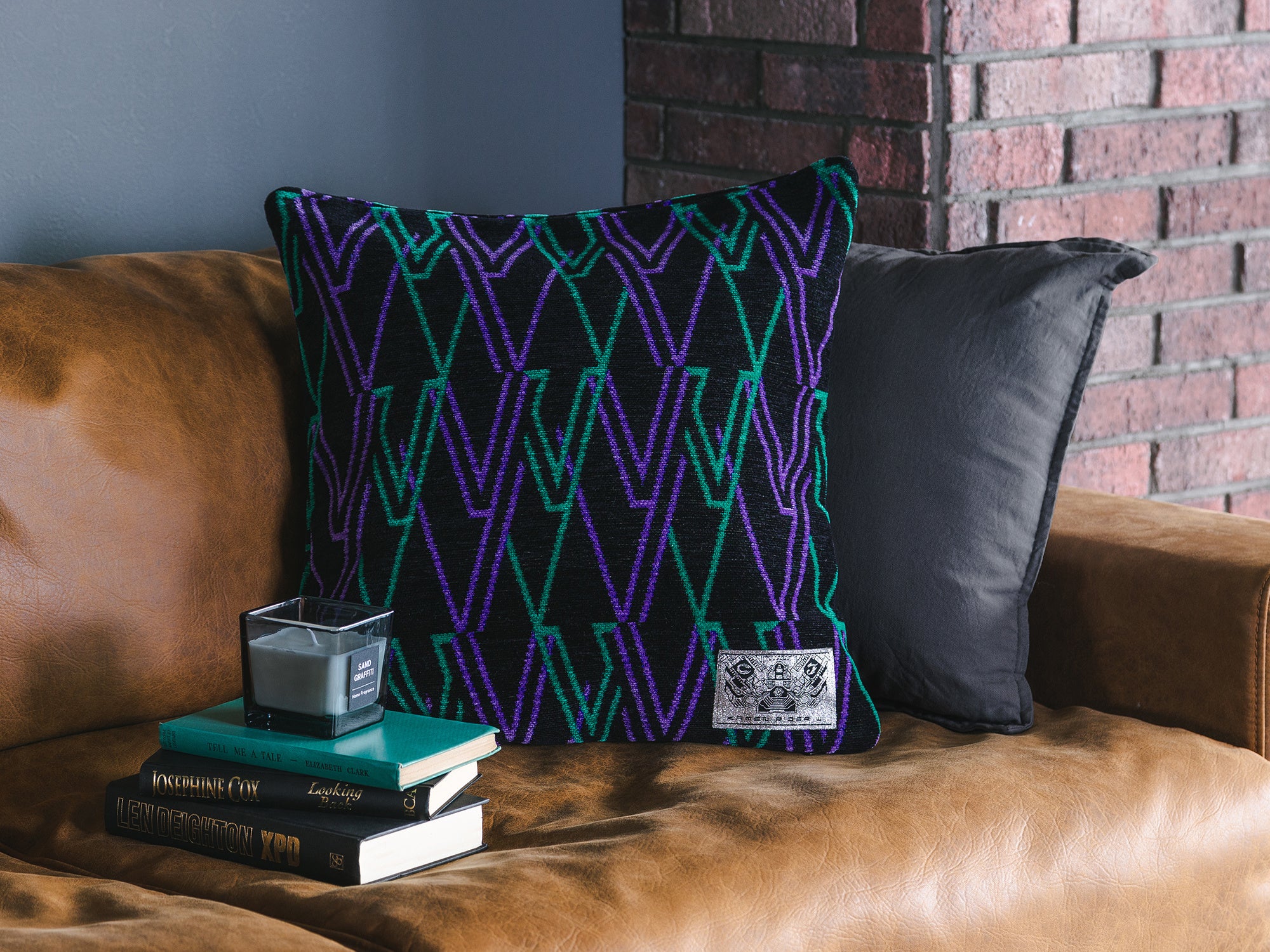 仮面ライダーWの「W」の文字をモチーフにした、クールな総柄デザインのクッションカバー。