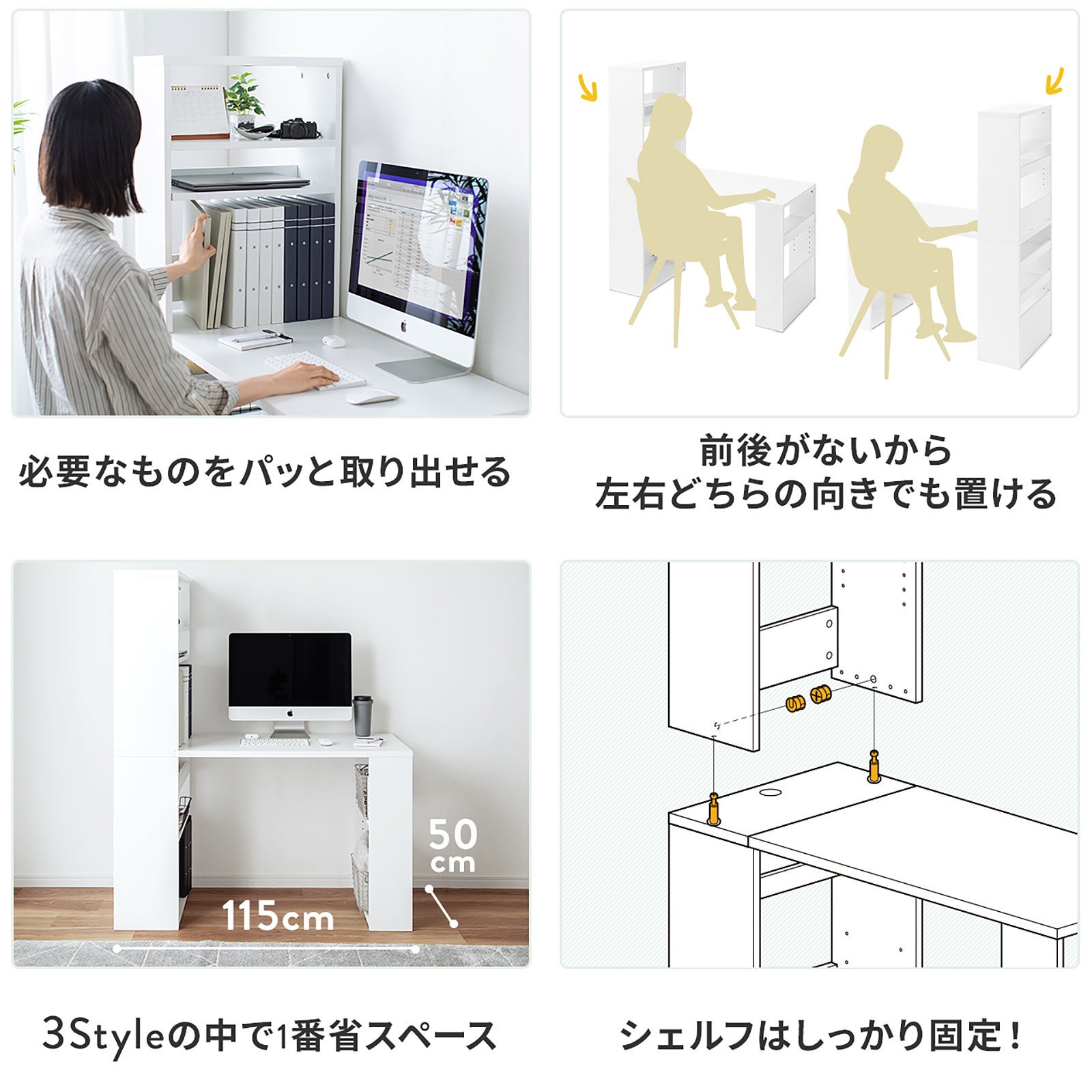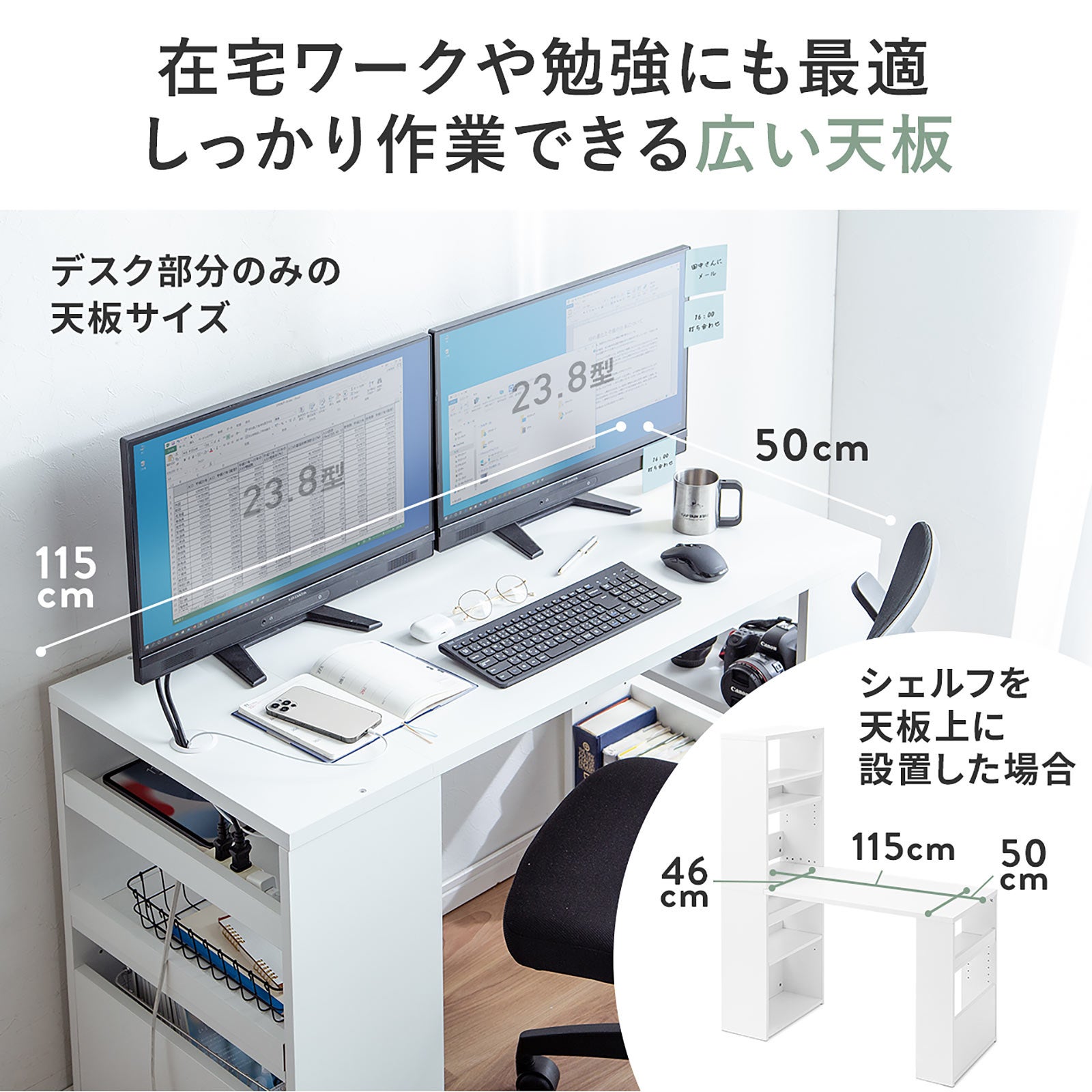 シェルフデスク システムデスク ユニットデスク 棚付きデスク パソコンデスク パソコンラック 書斎デスク 幅115cm 奥行50cm
