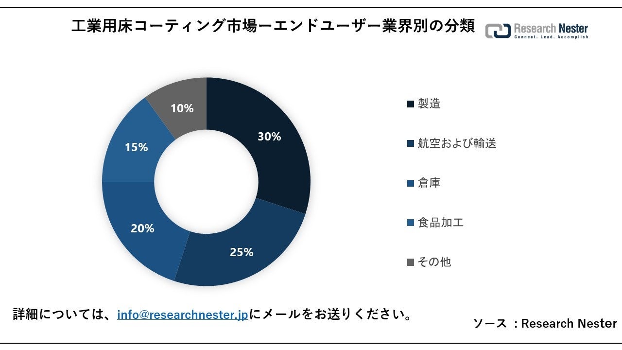 製品別に基づいて、エポキシセグメントは 2035 年末までに大きなシェアを獲得すると予想されています。これは、プロフェッショナルで高級な外観に対する消費者の嗜好が高まり、工業用床コーティングの需要が増加しているためと考えられます。さらに、柔軟なエポキシ樹脂は幅広いデザインや色に対応できるため、同セグメントの工業用床コーティング市場のさらなる成長が期待されます。さらに、業界では床のひび割れを防ぐために耐久性のある床材が求められており、工業用床コーティングの需要が高まっています。
