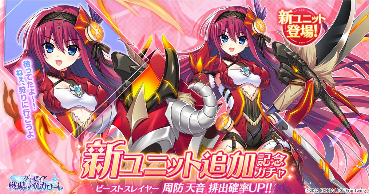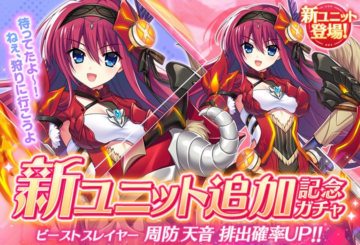 また、[ビーストスレイヤー]周防天音のユニットコアや各種育成に必要なアイテムが揃った「新ユニット育成特別パック【炎】」もショップにて販売中ですので、ぜひお買い求めください。