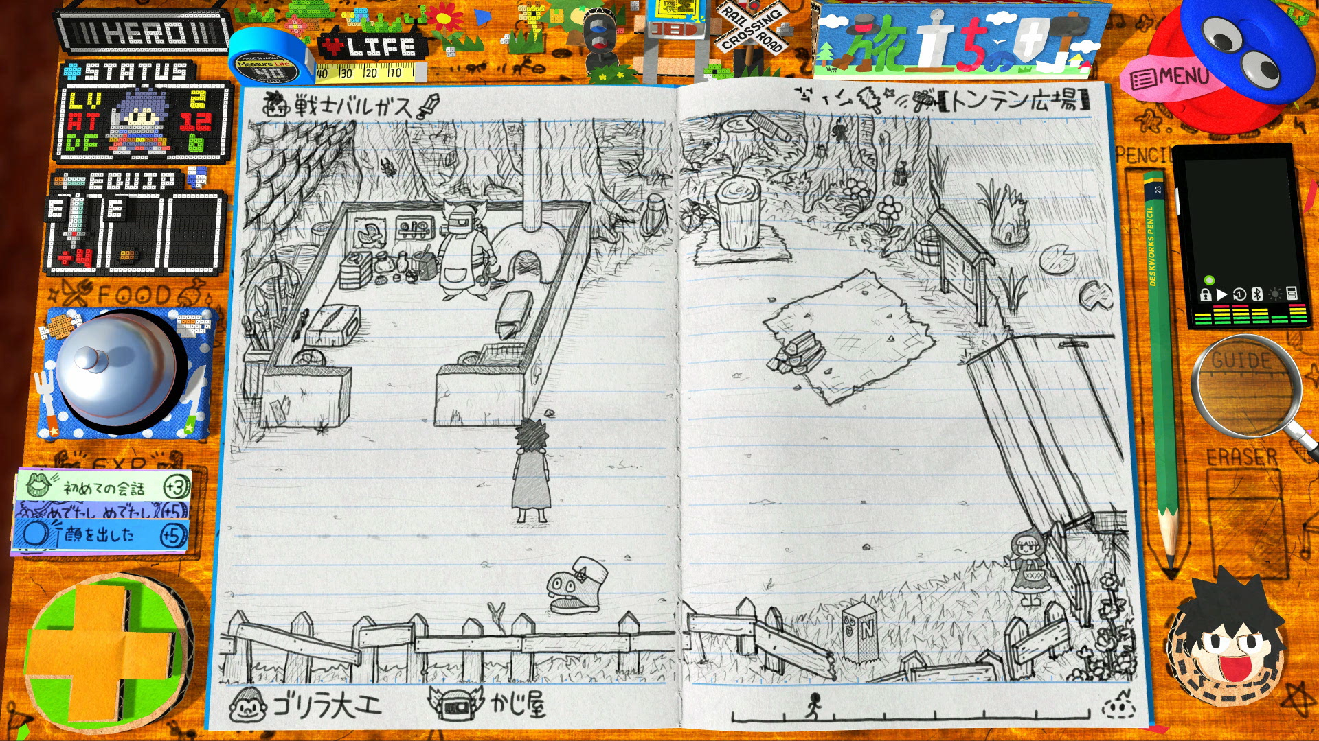 ノートに描いた手作りRPGで遊びましょう。