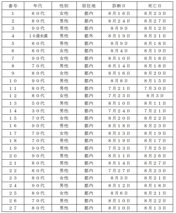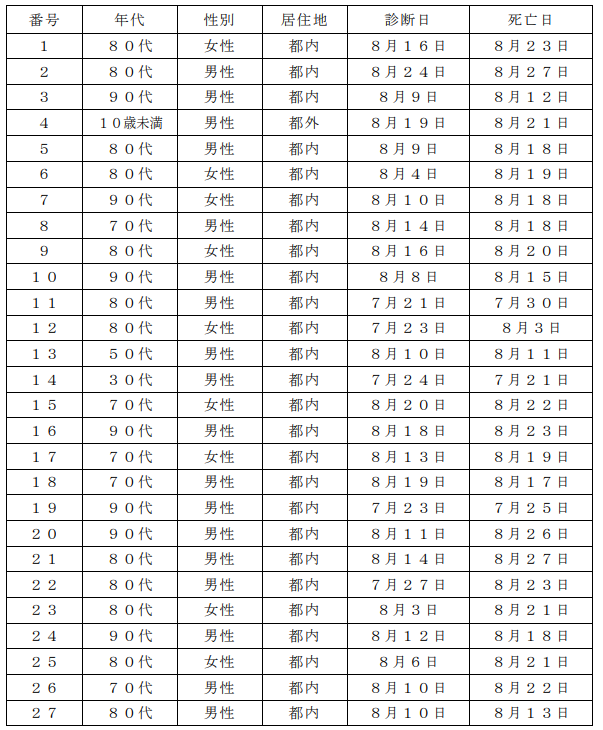都内で新型コロナウイルスに感染した方が死亡されましたのでお知らせします。