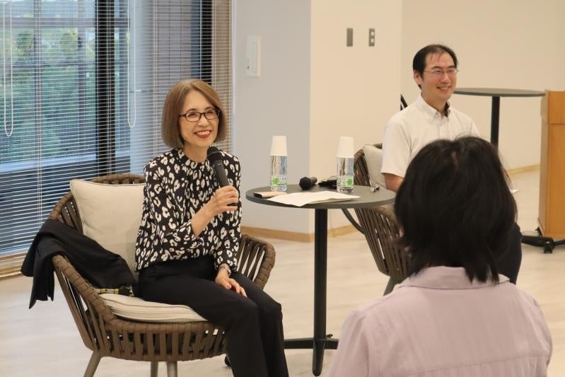 最初に、白波瀬教授が海外での経験や、女性のキャリアについて講演を行いました。性別や国籍に縛られず評価されるために必要な心構えについて、「個人として評価されるためには、自分の武器を持つことが重要。その上で、自分の専門分野だけでなく、多様な背景を持つ人とつながり、チームとして仕事をすることも大切だ」と説明しました。