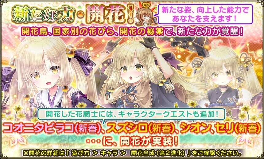 「オーニソガラム」「ボロニア」「ブルースター」「ゲッケイジュ」のキャラクエストがボイス付きで追加!