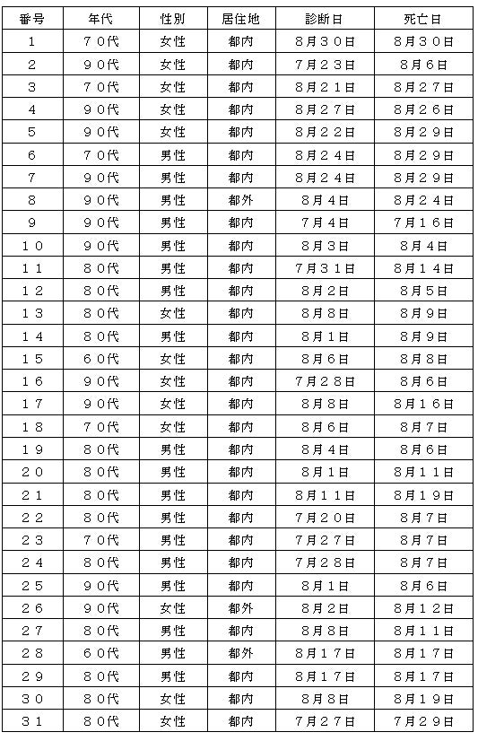 都内で新型コロナウイルスに感染した方が死亡されましたのでお知らせします。