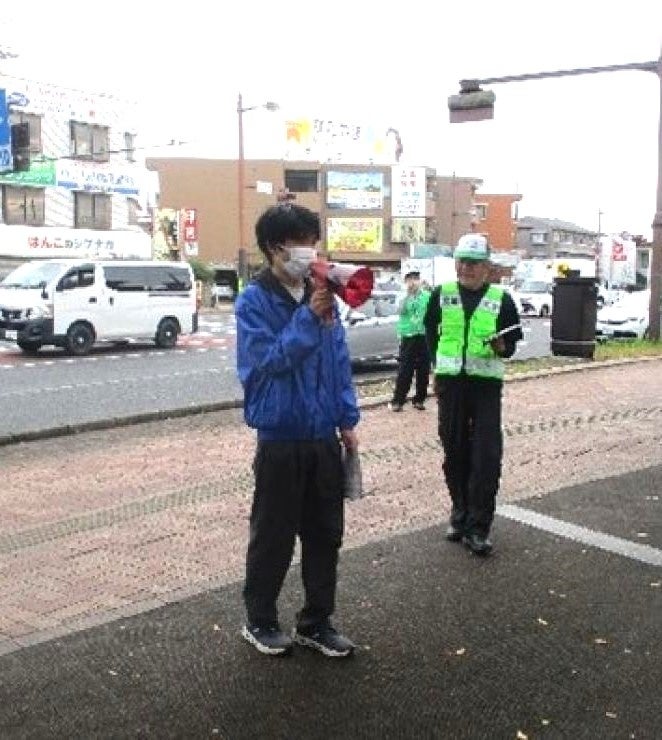 当日は午前8時からの活動で、自転車の安全利用を訴えるチラシを配布。交通ルールを遵守し、イヤホン着用や傘差し運転、信号無視をしないよう呼び掛けしました。また、ヘルメット着用や自転車盗難被害防止の二重ロック施錠を呼び掛けました。