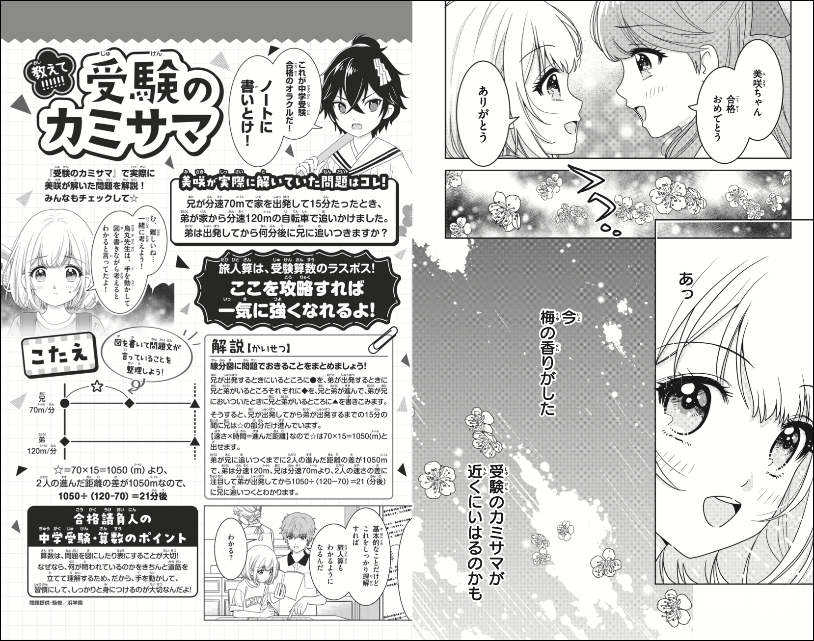さらに、本書に登場する中学受験対策問題は、中学受験で圧倒的合格者数を誇る「浜学園」が監修! 物語を読みながら、算数のテクニックを知ることができます。