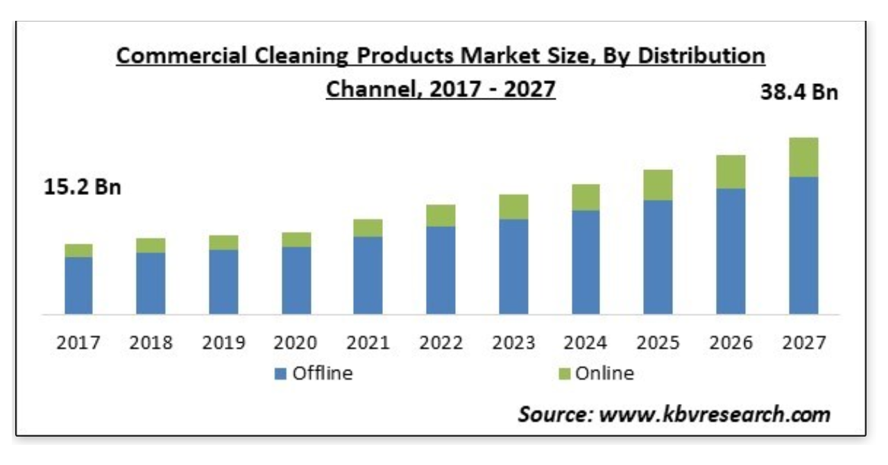 業務用洗浄剤の市場規模は2027年には384億米ドルに達し、予測期間中にCAGR10.9%の市場成長率で上昇すると予測されています。