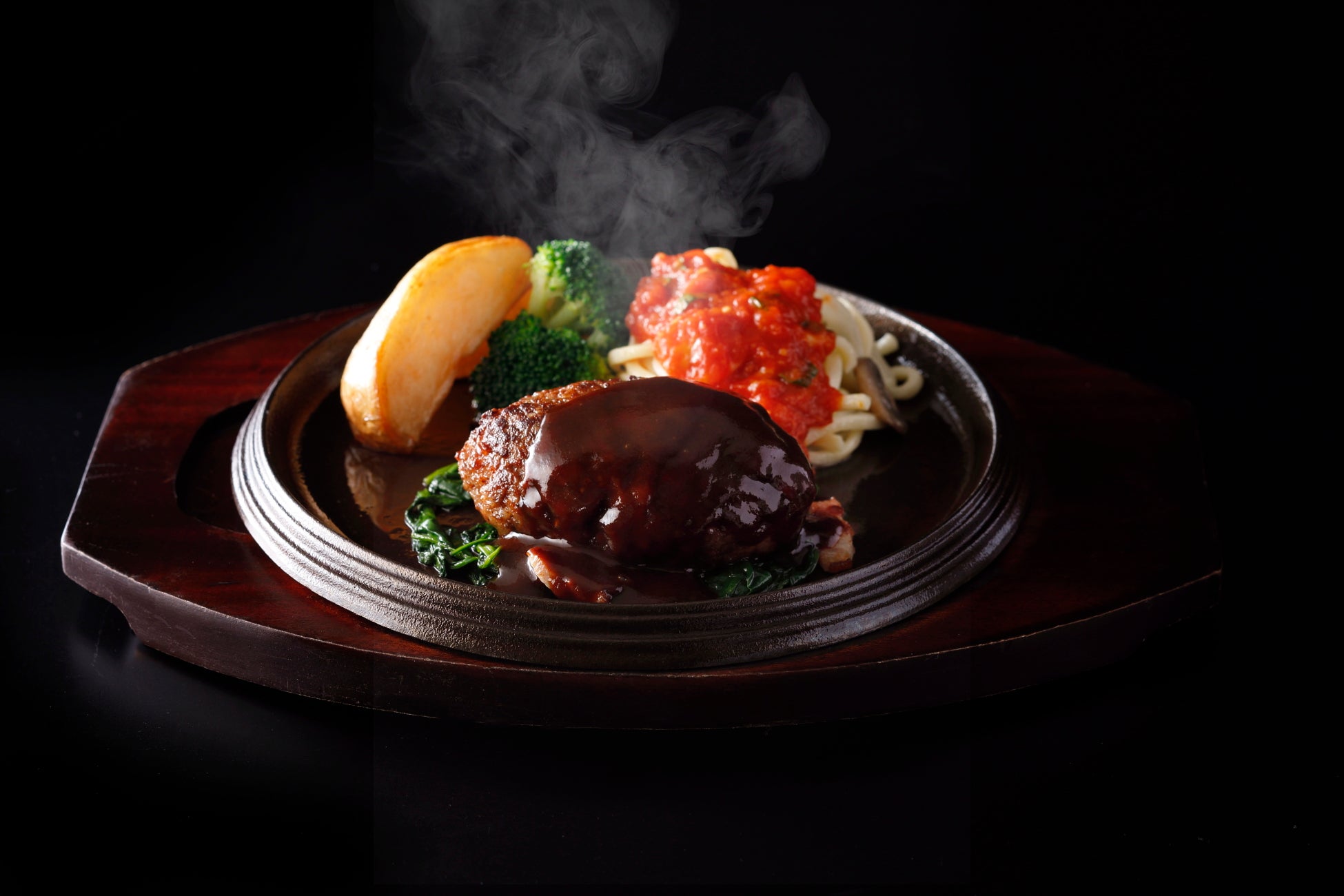 「鹿児島黒牛」と「かごしま黒豚」。この贅沢な二大銘柄を独自の黄金比で配合した最強のハンバーグ。あふれ出す肉汁と、昔ながらの濃厚なデミグラスソースが絡み合う味わいです。素材選びから成形まで、こだわりを詰め込んだ一皿です。寒い日には『鹿児島黒牛ビーフシチュー』(¥7,800 ※サービス料別)や『鹿児島黒牛甘口カツカレー』(¥4,800 ※サービス料別)もどうぞ。