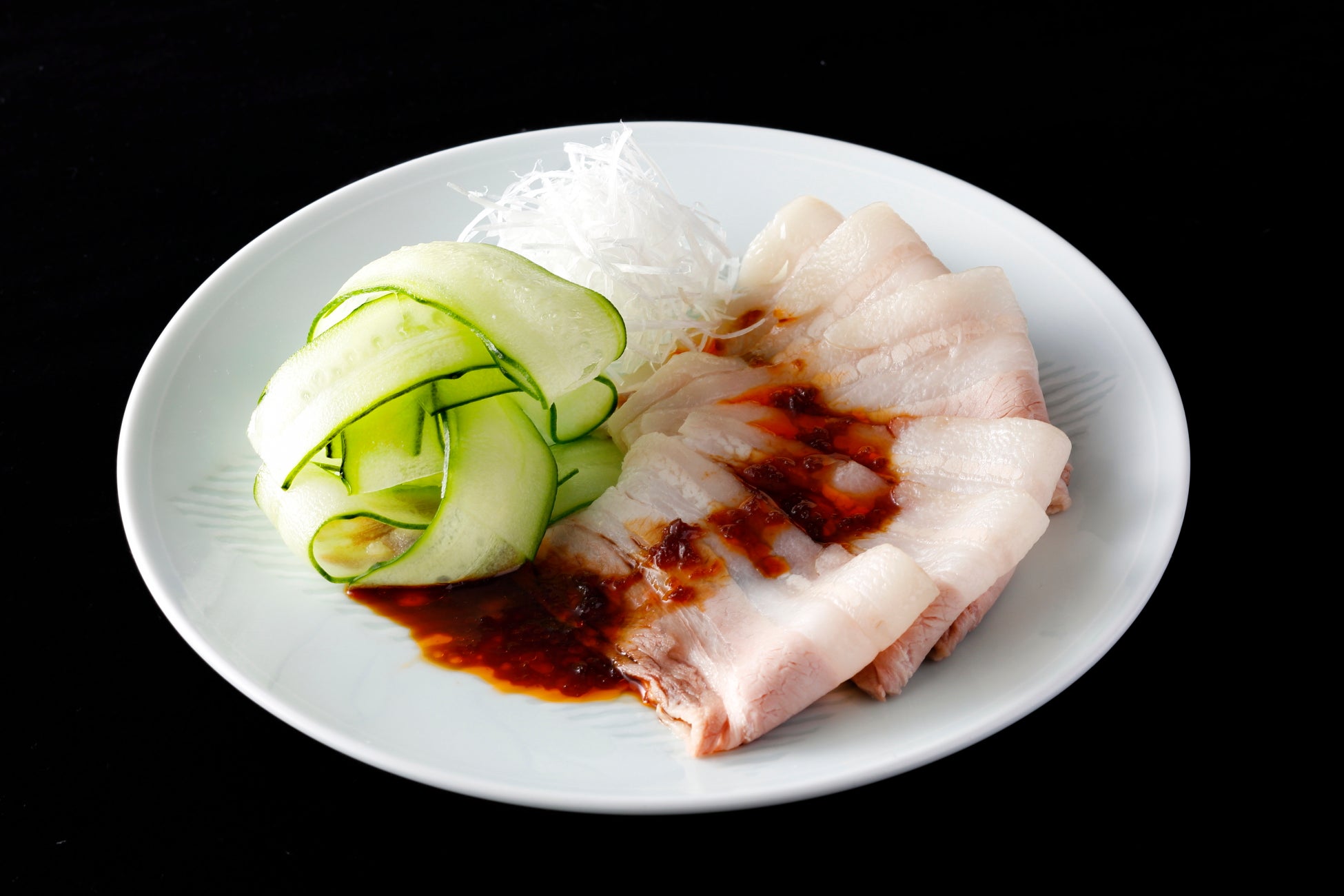 中国料理「大観苑」では、定番メニュー“雲白肉”を脂の乗った「かごしま黒豚」のロースで仕上げました。ニンニクや醤油、豆板醤などを合わせた特製ソースが、口に入れた瞬間に広がる旨みととろけるような柔らかさを引き立てます。