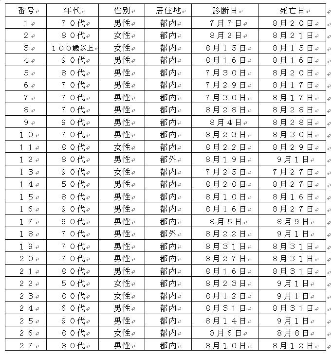 都内で新型コロナウイルスに感染した方が死亡されましたのでお知らせします。