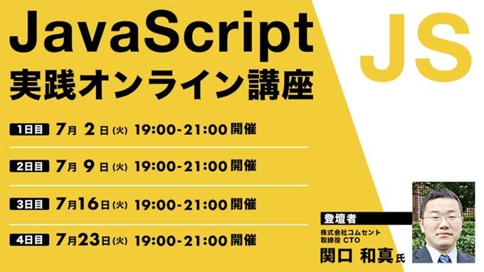 【Webクリエイター向け】JavaScriptをより実践的に学びたい方におすすめ!7/2(火)~ 全4回「JavaScript実践オンライン講座」開催(参加費無料)