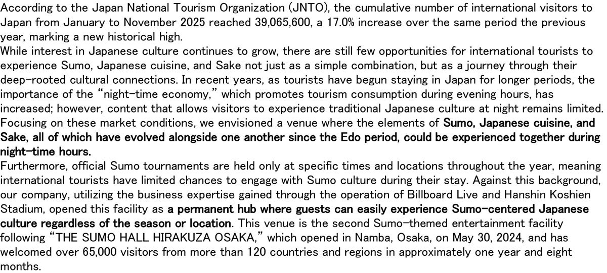 (参考)THE SUMO LIVE RESTAURANT日楽座GINZA TOKYOについて