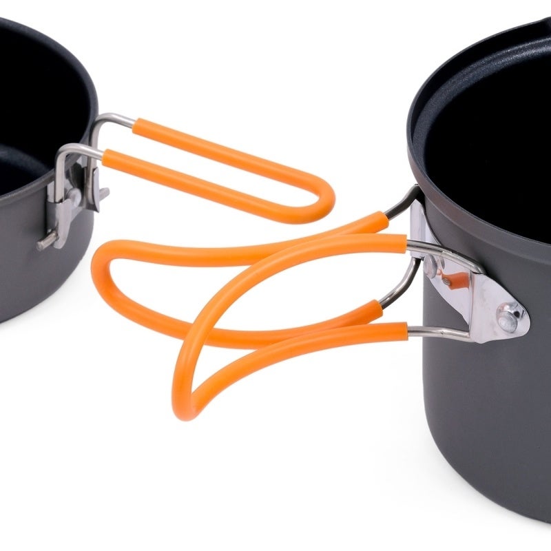 OD缶やバーナーも収納出来るコンパクトさ、軽量なアルミ製は熱伝導に優れ内側は手入れが楽なノンスティック加工。