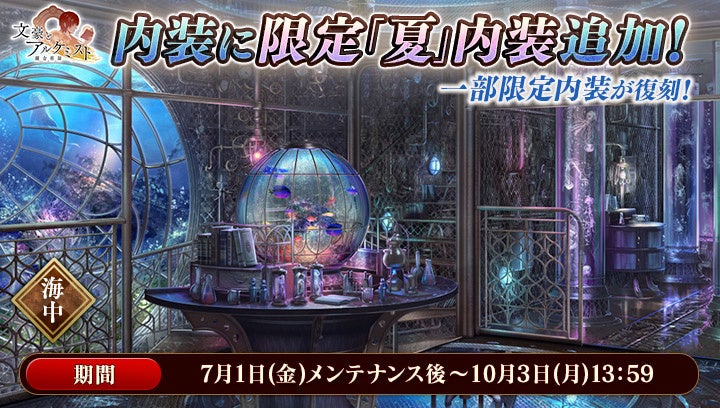 DMM GAMES『文豪とアルケミスト』イベント『調査任務「館長のとある回顧談」』開催!イベント『館長の共同研究』、新規『夏』内装販売開始のお知らせ