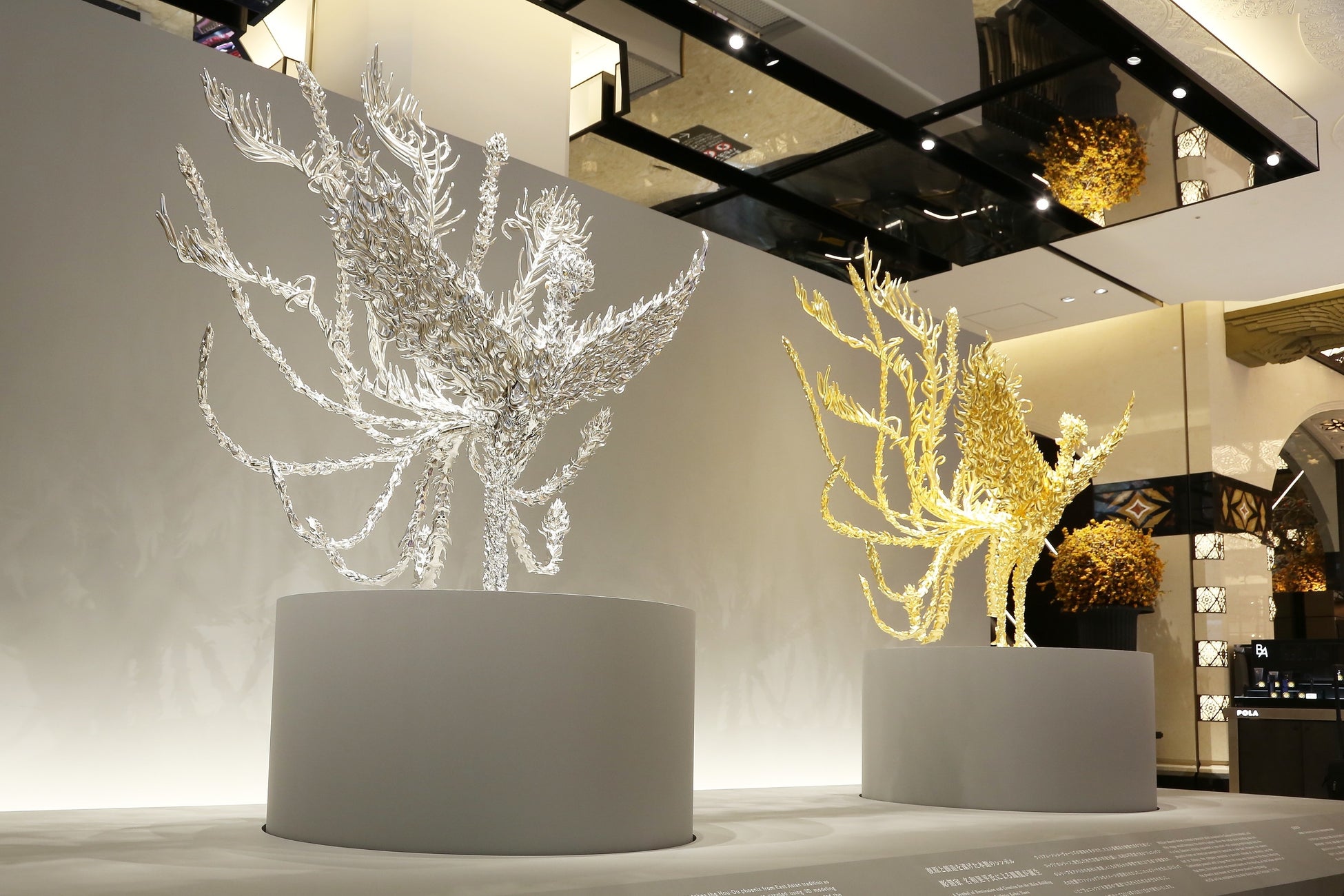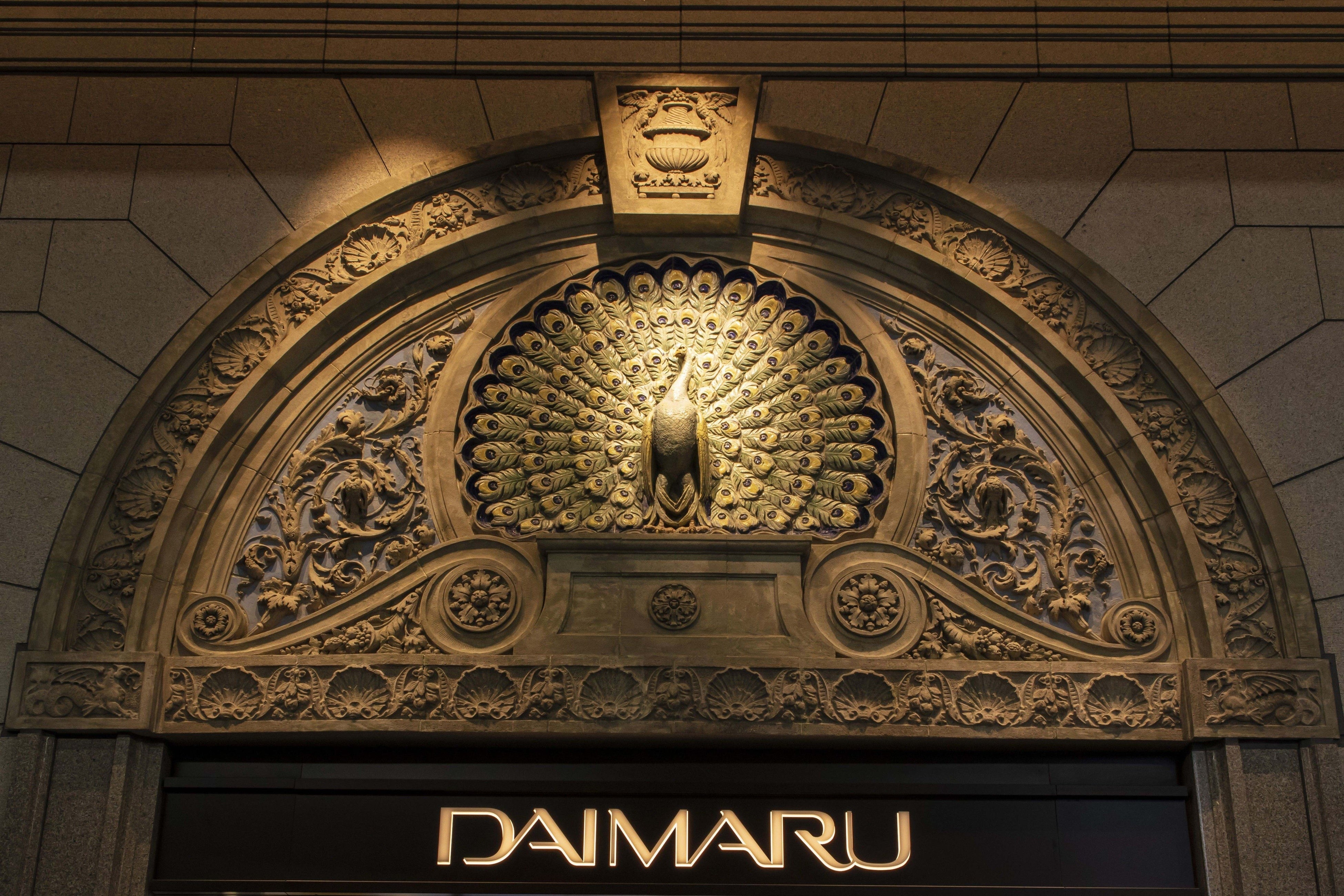 1925年(大正14年)大丸心斎橋店の店舗拡張の際に設置された孔雀レリーフ。木造店舗焼失からの再建を願い“不死鳥”を発注したところ、貴重で珍重される“孔雀”が提案されたというエピソードが残っています。2019年、本館建替えグランドオープンの際には、名和晃平氏によるアート作品「鳳/凰(Ho/Oh) 」が誕生。レリーフ発注時のエピソードを元に、幻となった“不死鳥”を東洋の“鳳凰”になぞらえ制作されました。この想いを引き継ぐと同時に、日本らしさ、大丸らしさを発信するべく、世界的に注目される日本のポップカルチャーに着目。手塚治虫氏のアニメ「火の鳥」とのコラボが実現いたしました。