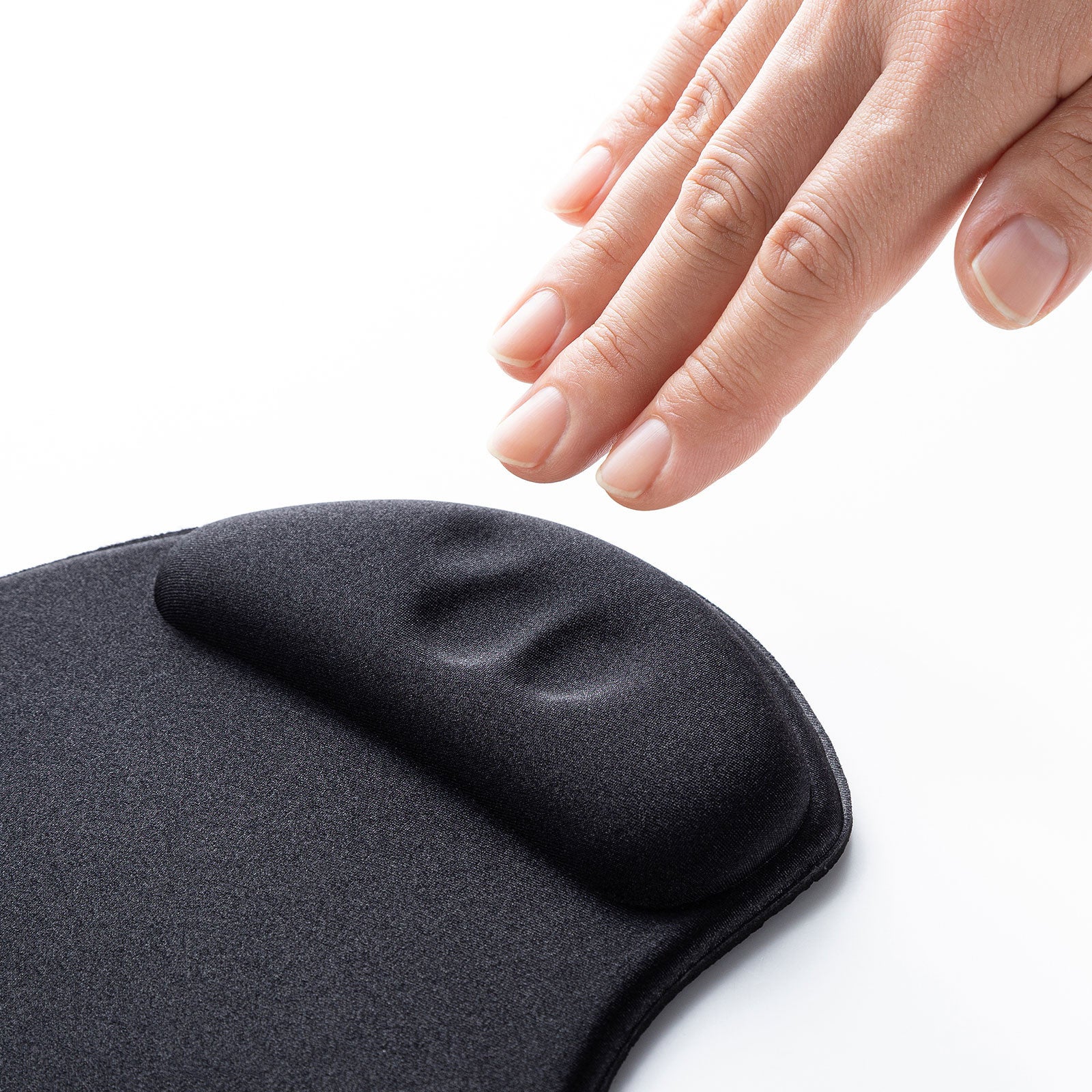 反発弾性が非常に少ない低反発ウレタンを使用したリストレストと一体化になっており、手首への圧力が分散され、長時間のマウス操作による手首や腕の疲れを軽減できます。