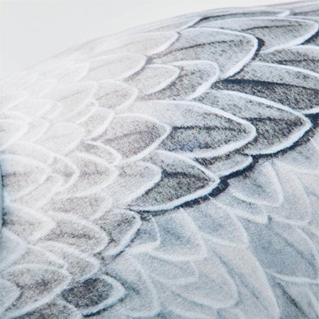 クッションの裏面には、ハシビロコウの折りたたまれた脚がリアルにデザインされています。どの角度から見てもハシビロコウの魅力が満載です。