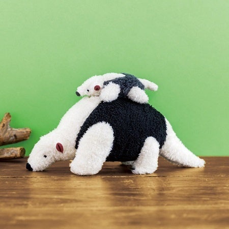 神戸どうぶつ王国の人気モノ、おんぶ歩きのミナミコアリクイの親子を再現したポーチです。