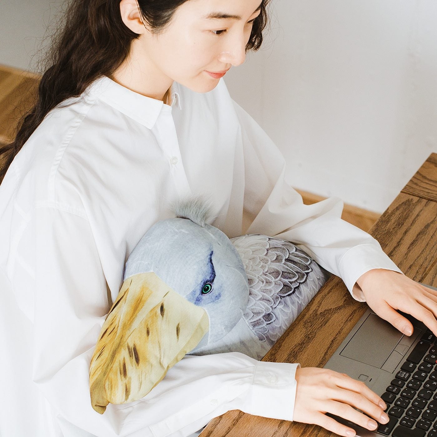 ハシビロコウのお座りってこうなの!? 休憩中の姿を再現したハシビロコウクッションが新登場