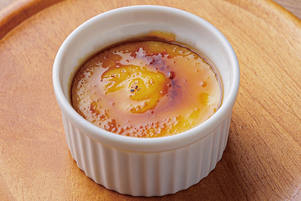 ご予約特典として、ご利用前日の17時までに予約されたお客さまを対象にスペイン・カタルーニャ地方の伝統的なデザート「カタラーナ」をご提供します。“春”という季節の爽やかさをオレンジ風味のアレンジで表現しました。仕上げにキャラメリゼした表面はパリパリ、中身はとろーりとした食感のコントラストと、ほろ苦さと甘さのバランスが絶妙なスイーツです。