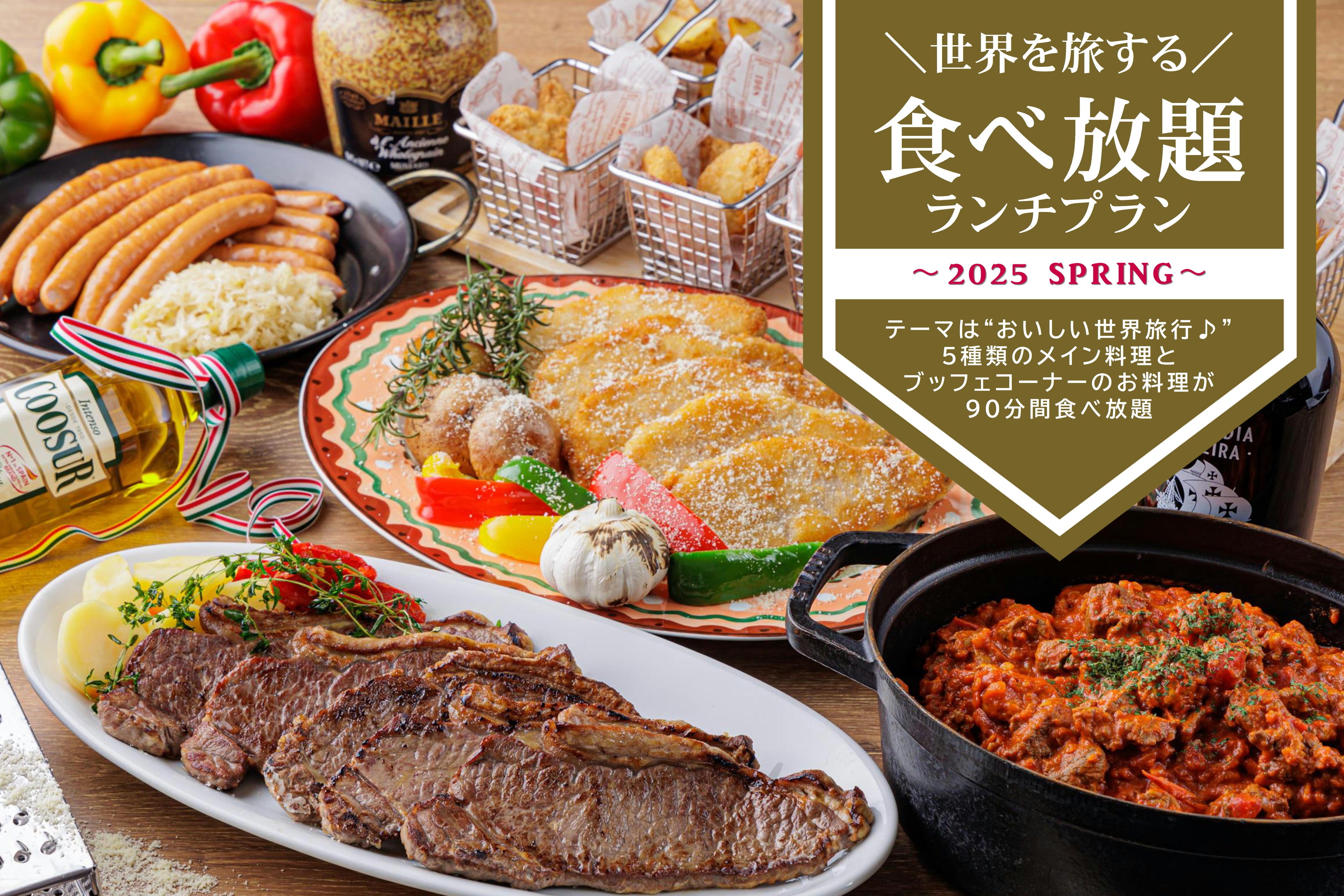 テーマは“おいしい世界旅行”。第一弾「春」はイタリアやドイツなど5カ国のお料理を食べ放題でご提供します。