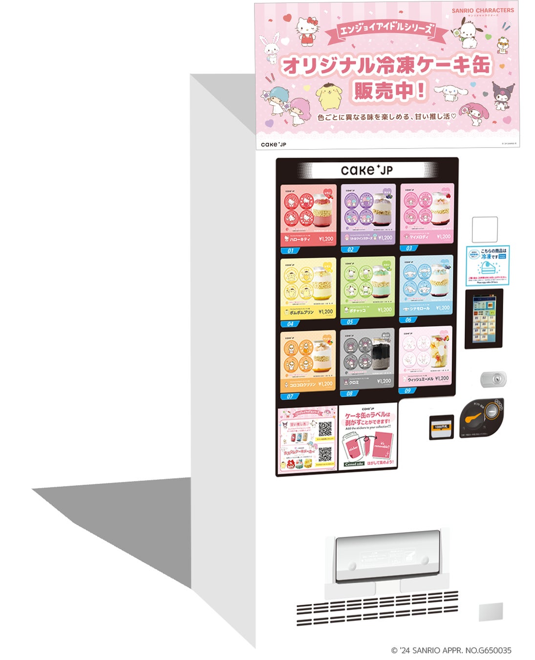 【サンリオキャラクターズ エンジョイアイドルシリーズ】を通じた推し活をもっと楽しく彩るアイテムとして、ケーキ・スイーツ専門サイト Cake.jp(ケーキジェーピー) がコラボした「オリジナルケーキ缶」をご購入いただける自動販売機を設置します。