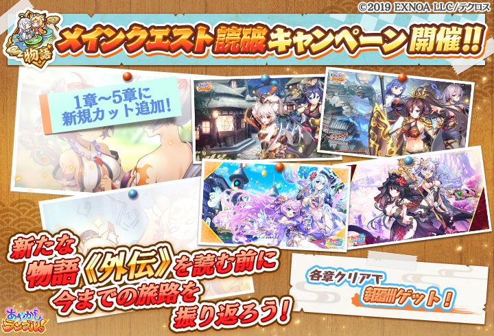 合同会社EXNOA(本社:東京都港区、CEO:村中 悠介、URL:https://games.dmm.com/)が運営するDMM GAMESにおいて、あやかし美少女たちと冒険する、迎撃型爽快スキルバトルRPG『あやかしランブル!』(https://ayarabu.jp/)は、7月6日 16:00に、水着姿の「★5メグ」「★5ヒエン」を追加したことを発表した。また、イベント報酬で「★5マゴイチ」が手に入る期間限定の逢魔襲来イベントも開催している。さらにログイン7日目には「★5式神確定召喚券」が手に入る「あやらぶ♡1000日記念っ!ログインボーナス」も開催する。