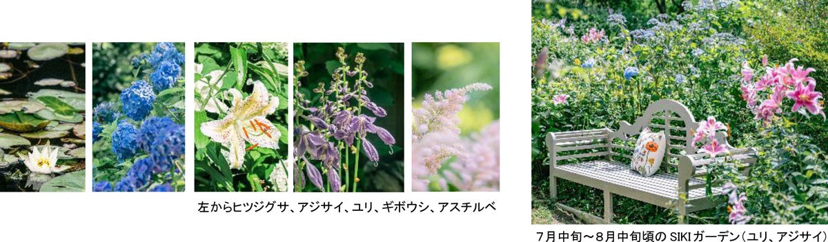 当施設のガーデンは「SIKIガーデン~音の散策路~」と称し、音とガーデンが楽しめる独自のスタイルのガーデンを造成しています。下記の期間ごとに「ワルツ(円舞曲)*1」「コンチェルト(協奏曲)*2」「シンフォニー(交響曲)*3」と音楽をモチーフとしたテーマを設け、花々とともに音楽や音を楽しむ仕掛けを展示します。