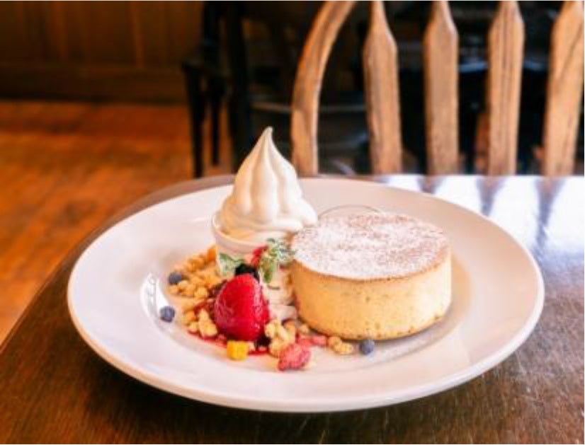 (内容:スフレパンケーキ、ベリーソース、ソフトクリーム、グラノーラ、アガべシロップ、選べるドリンク)
