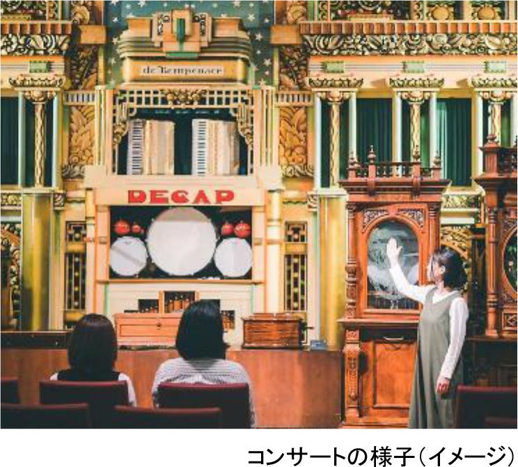 フェアテーマの「ワルツ」「コンチェルト」「シンフォニー」にまつわる楽曲や植物にちなんだ楽曲をオルゴールなどの自動演奏楽器で演奏します。