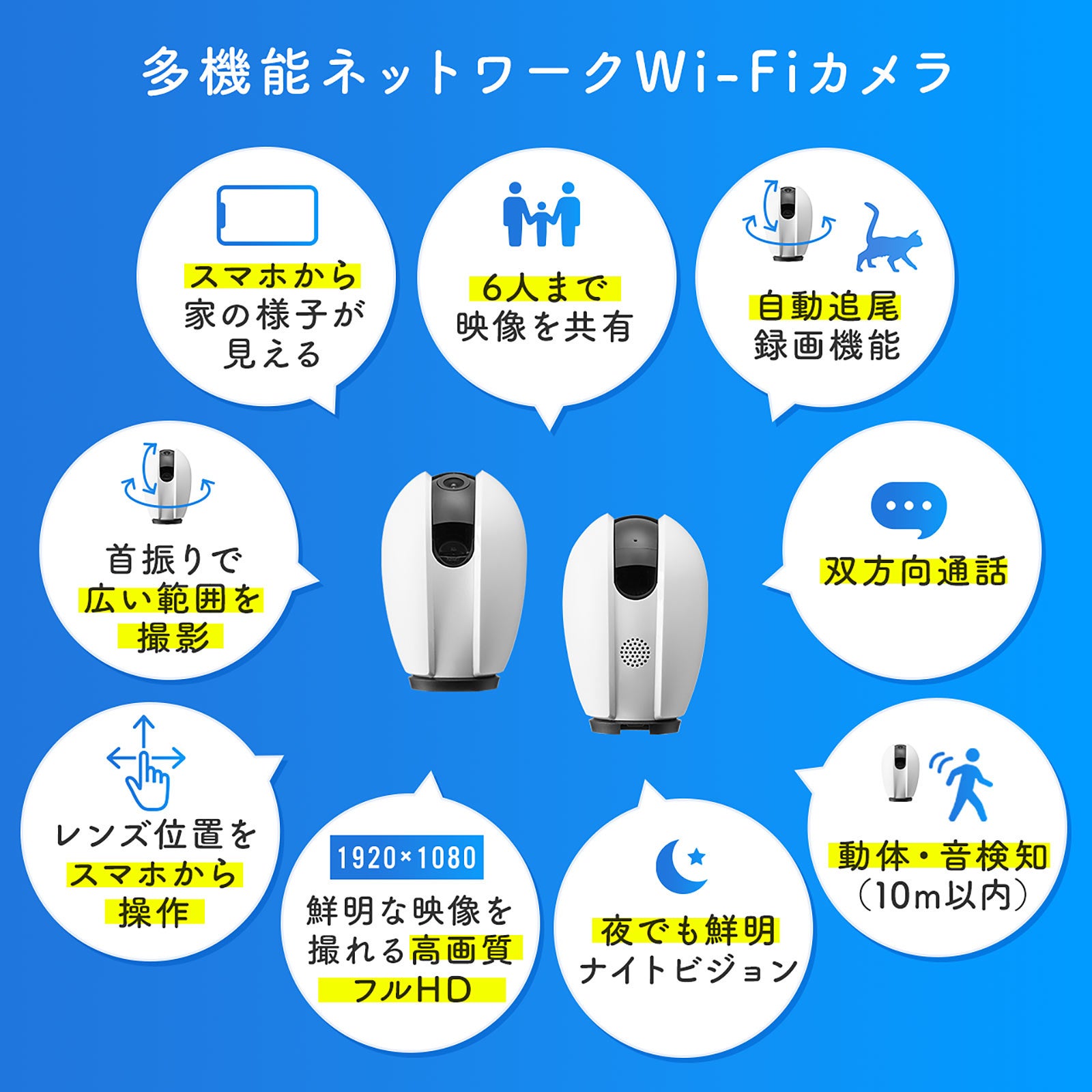 ネットワークカメラ 見守りカメラ 自動追尾 Wi-Fi 無線 ベビーモニター ペットカメラ 防犯 屋内カメラ 夜間撮影 動体検知 相互音声会話 SDカード録画 スマホ通知