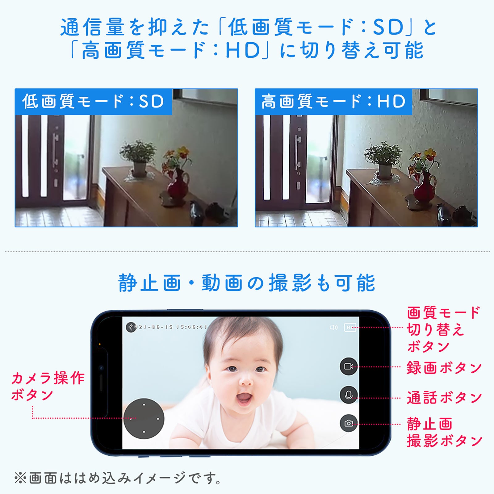 本製品は、スマホを使って外出先からカメラを設置した自宅が確認できるネットワークカメラです。