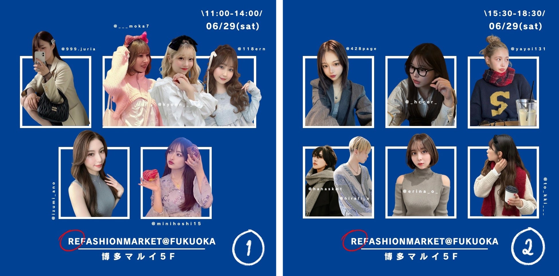 博多マルイ(株式会社丸井、本社:東京都中野区、代表取締役社長:青野 真博)5Fイベントスペースにて、インフルエンサーによる若者向けフリマ「RE FASHION MARKET」を6月29日(土)に開催いたします。10名を超えるインフルエンサーが約50点のアイテムを持ち寄り販売します。推しインフルエンサーの方と一緒に話しながら、買い物も楽しめるフリーマーケットとなっています。
