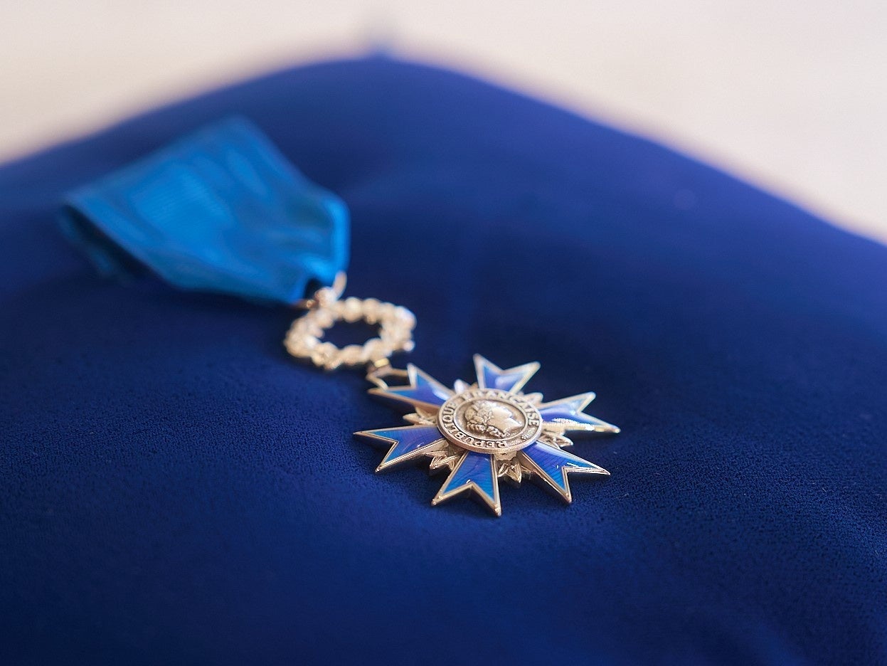フランス共和国大統領の決定により、フランス政府から与えられる国家勲章の一つ。1802年、ナポレオンにより創設された最高勲章「レジオン・ドヌール勲章」に次ぐ栄典として1963年に創設されました。多様な活動分野において優れた文民的功績を挙げたフランス国民および外国人に授与されます。