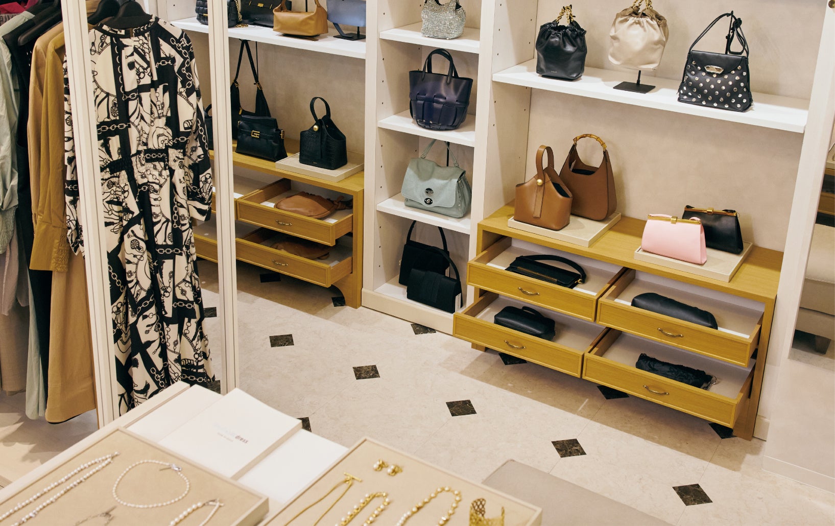 お客様のニーズに即した服、バッグ、アクセサリーなど約50の
