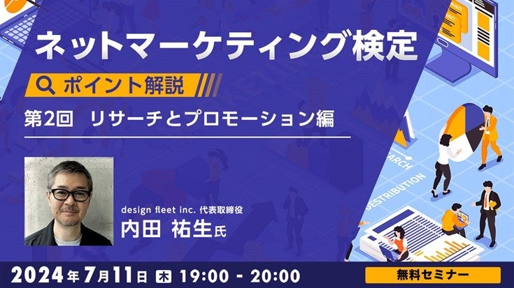 株式会社クリーク・アンド・リバー社(C&R社)は7月11日(木)、ネットマーケティングの基礎を学びたい方を対象に、無料のオンラインセミナー「ネットマーケティング検定ポイント解説 Vol.2 リサーチとプロモーション」を開催します。