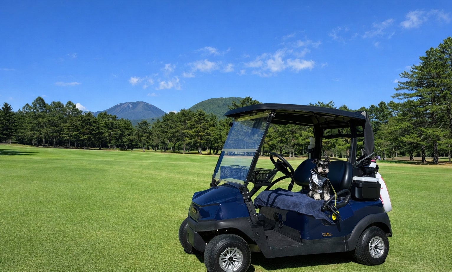 ※2名用乗用ゴルフカーに1名さまとワンちゃん1頭まで同乗可能