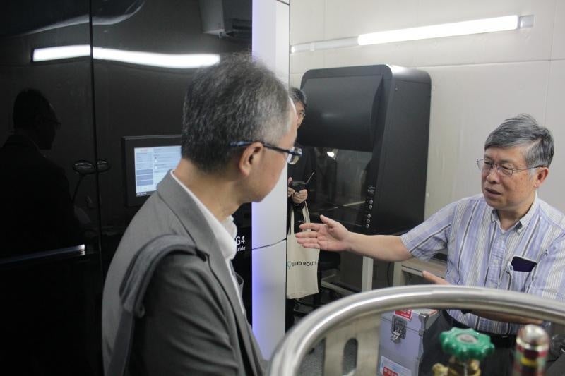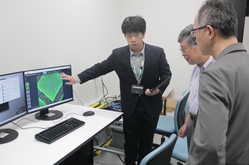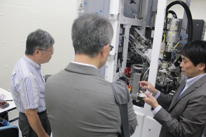 永澤参事官からのメーカーについての質問に対し、クライオ電子顕微鏡とクライオトモグラフィについて同じメーカーから購入していることや、メーカーを統一することで、規格を一致させ、失敗率を下げていること等を説明しました。また、クライオトモグラフィの操作の難易度についても質問があり、新しい型のため、グラフィック的に操作ができ、比較的わかりやすいことや、試料を取り出さずに実験を進められることで劣化を防ぐことができること等の紹介がありました。