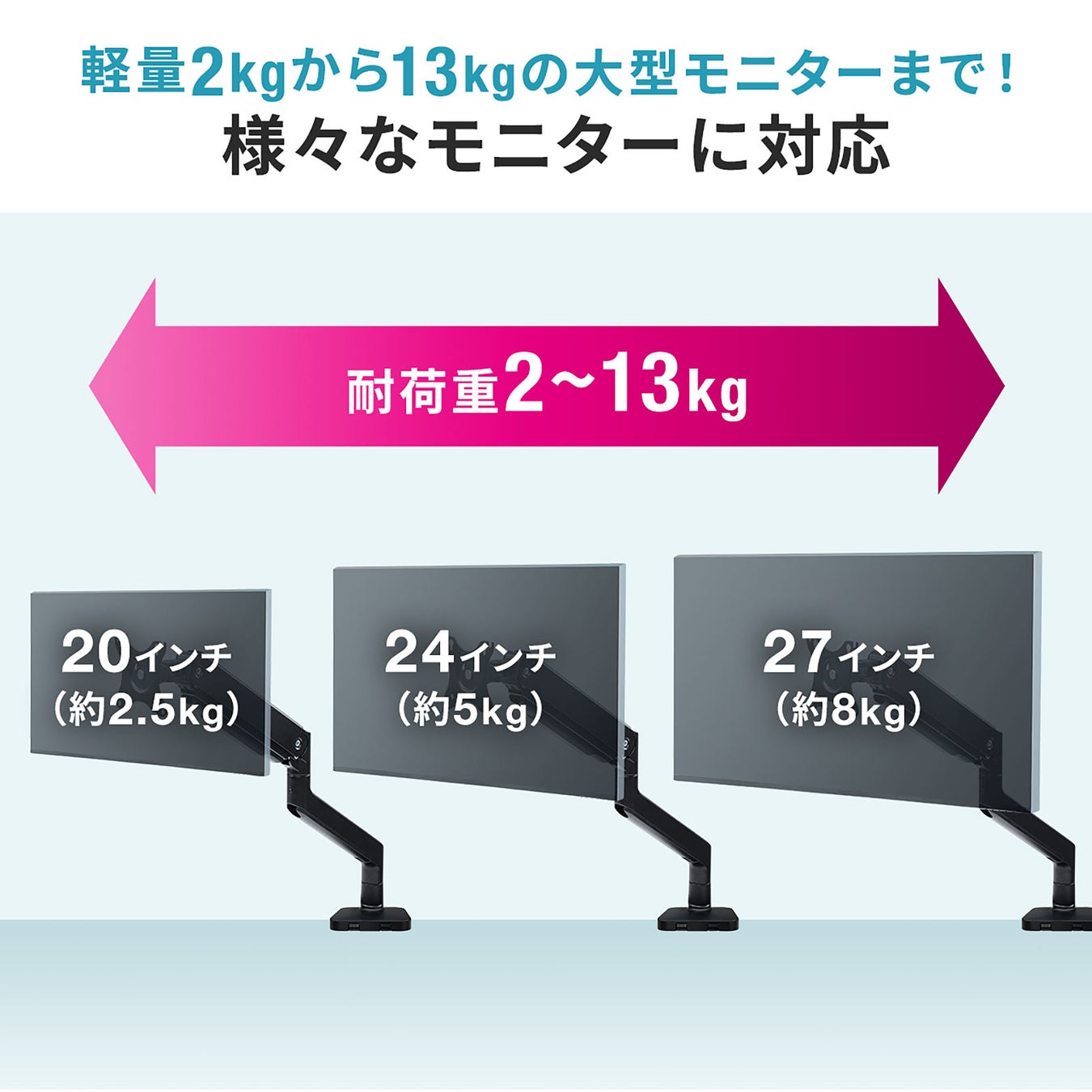 モニターアーム スプリング式 耐荷重2~13kg ブラック