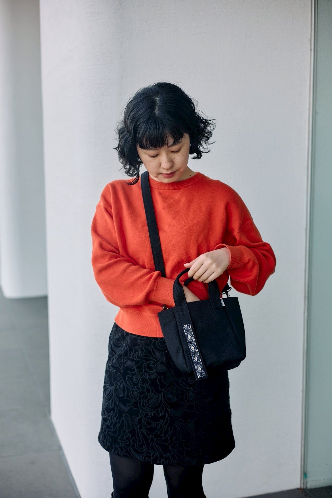 耐久性に優れた帆布に、博多織の帯地ハギレを一点ずつ組み合わせ、縫製・仕立ては福岡の縫製工場・フクハン株式会社が担当。素材選定から仕様設計まで博多の地で行い、“メイド・イン・博多”のバッグ「NABIKI」が誕生しました。モチーフに使用している博多織は、筑前織物および鴛海織物で織られた帯地のハギレ。帯として人の動きに寄り添ってきた博多織の「揺れ」「余白」「風になびく美しさ」を、日常で使えるかたちへと再構成しています。ハンドバッグとショルダーバッグの2WAY仕様とすることで、和装・洋装を問わず、持ち方や装いによって博多織の見え方や印象が変わる点も特徴です。