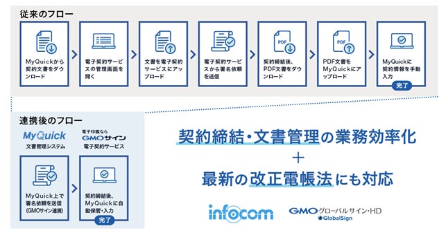 GMOグローバルサイン・HDの電子契約「電子印鑑GMOサイン」とインフォコムの文書管理システム「MyQuick」が連携