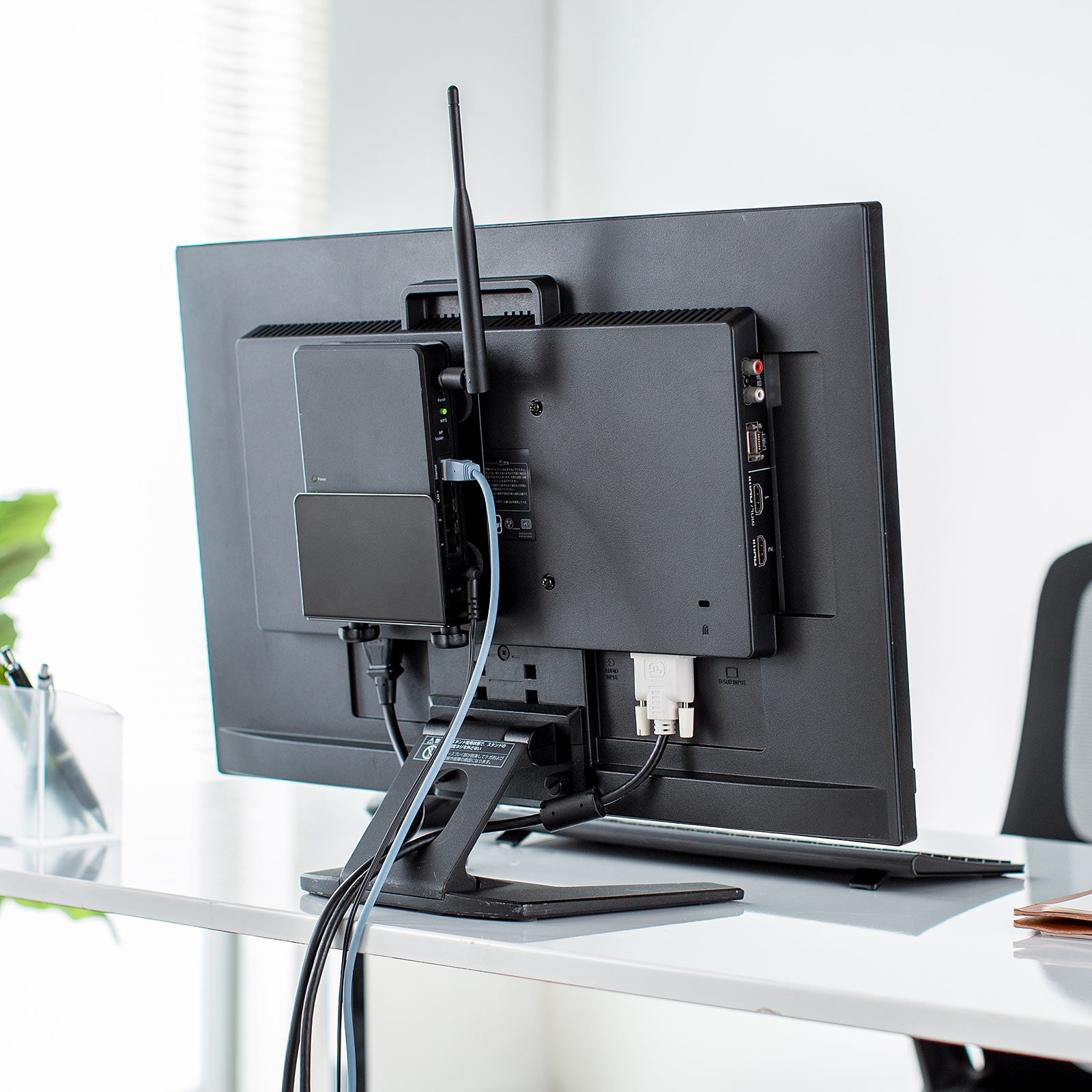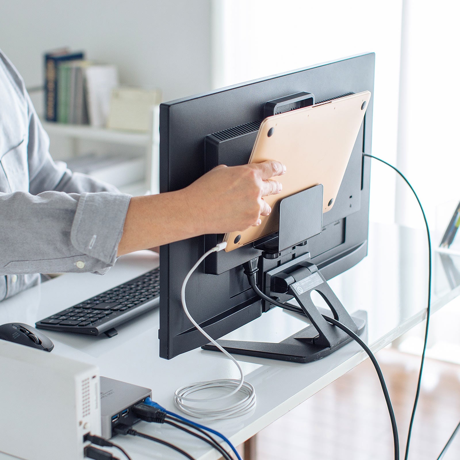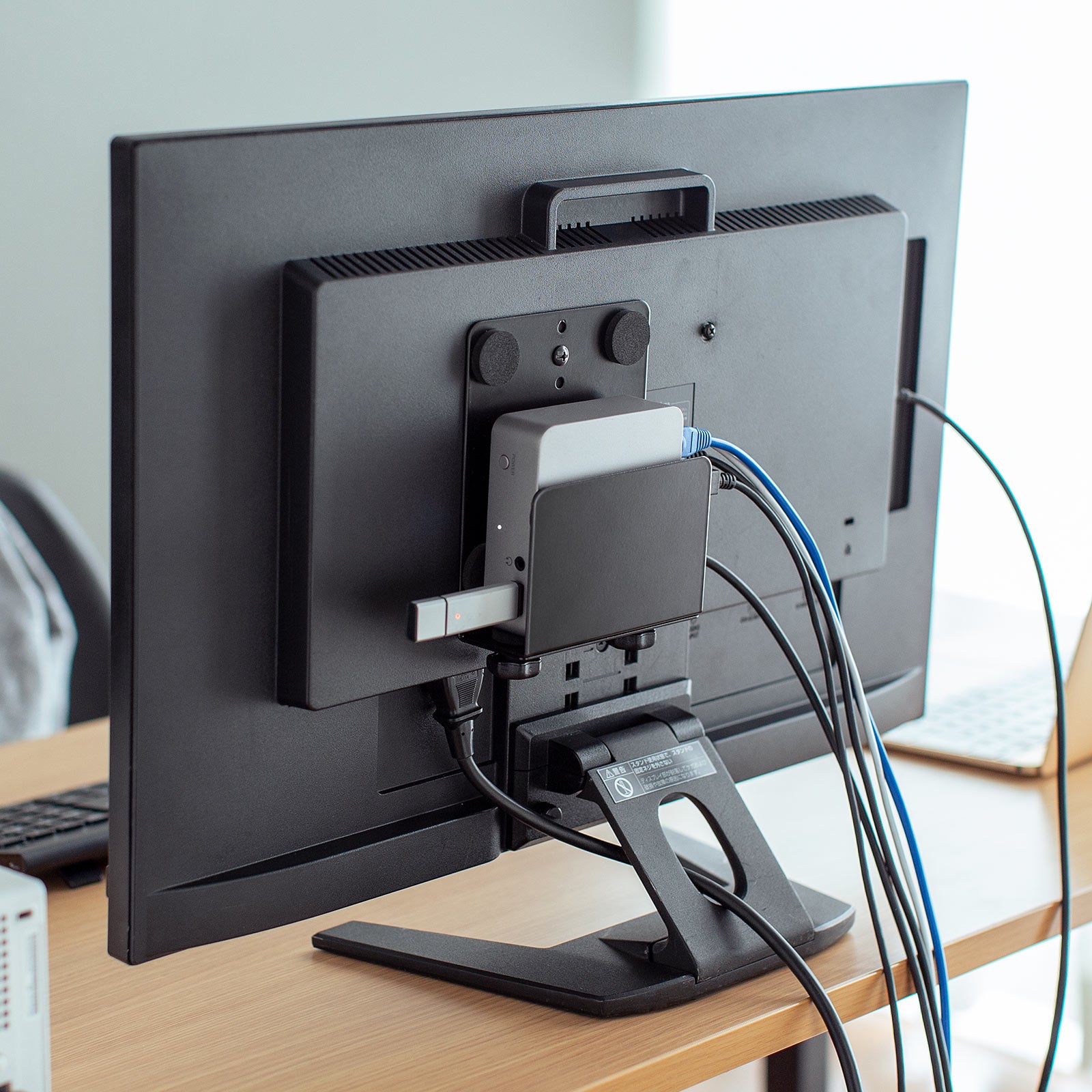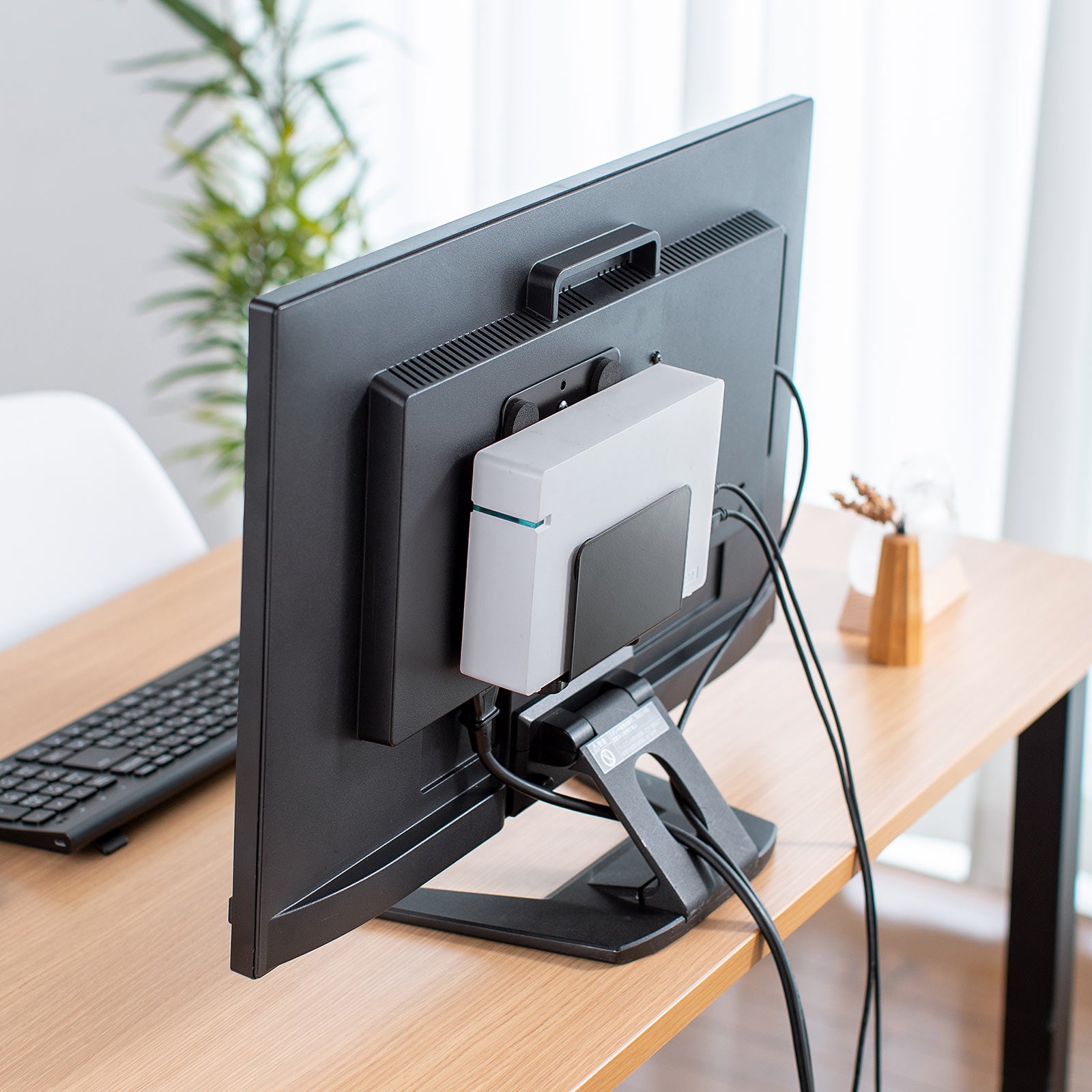 本製品は、モニター裏のVESA規格のネジ穴を使用して、HDDや小型PC、Nintendo Switchなどの設置に便利なホルダーです。