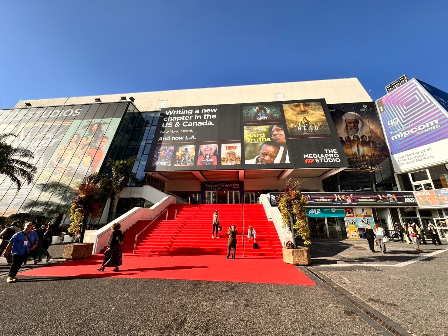MIPCOMはカンヌ国際映画祭の会場と同じ「パレ・デ・フェスティバル」で開催されており、今年で40回目となります。バラエティ、ドラマ、ドキュメンタリーなどあらゆるジャンルで、世界中のコンテンツホルダーやバイヤーが商談に訪れ、近年はフォーマットセールスも行われています。昨年は100カ国から320社、11,000人が来場し、今回は24日(木)までの会期中、110カ国以上から330社、11,000人以上の参加が見込まれています。