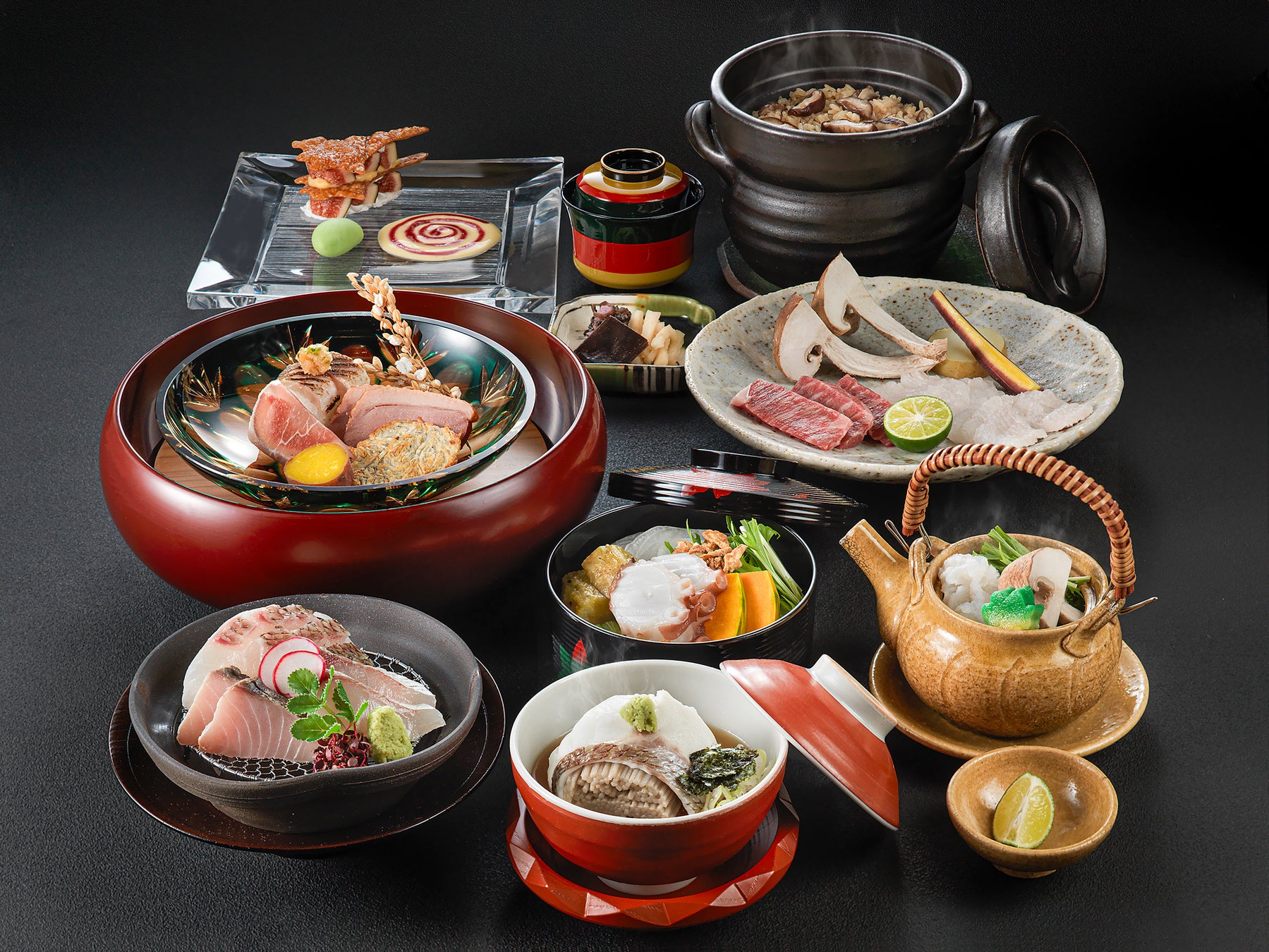 日本料理「あわみ」では、淡路島の秋の恵みを贅沢に散りばめた4周年記念会席をご提供します。あわじ田助鴨の燻製や、淡路産いちじく、かますの小袖寿司など、季節の彩りあふれる前菜、椀変わり「土瓶蒸し」と「炭火焼き」には、淡路産の鱧と秋の味覚・松茸をご用意します。秋の鱧は「名残り鱧」とも呼ばれ、身に厚みが出て脂がのり、夏場とは違った深みを感じられます。松茸の香りを纏った鱧の身、鱧と松茸の風味が溶け込んだ出汁に魅了される土瓶蒸し、淡路牛、鱧、松茸などの厳選素材を芳ばしく炙る炭火焼は、淡路島の藻塩を付け召し上がっていただくことで凝縮した旨味が一層伝わります。さらに、淡路島えびす鯛と淡路産の手延べそばを合わせた鉢物「信州蒸し」や会席料理を締めくくる松茸御飯まで、繊細な和の技法から生まれた華やかな料理をお届けします。