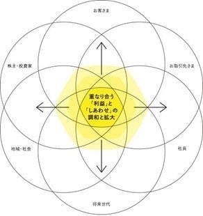 当社グループは、2019年にステークホルダーとして将来世代を加えました。これは、現世代だけの短期的な「しあわせ」ではなく、将来世代を含むすべてのステークホルダーの「利益」と「しあわせ」が重なり合う部分を、調和させ拡大することこそが、真の企業価値であると考えています。