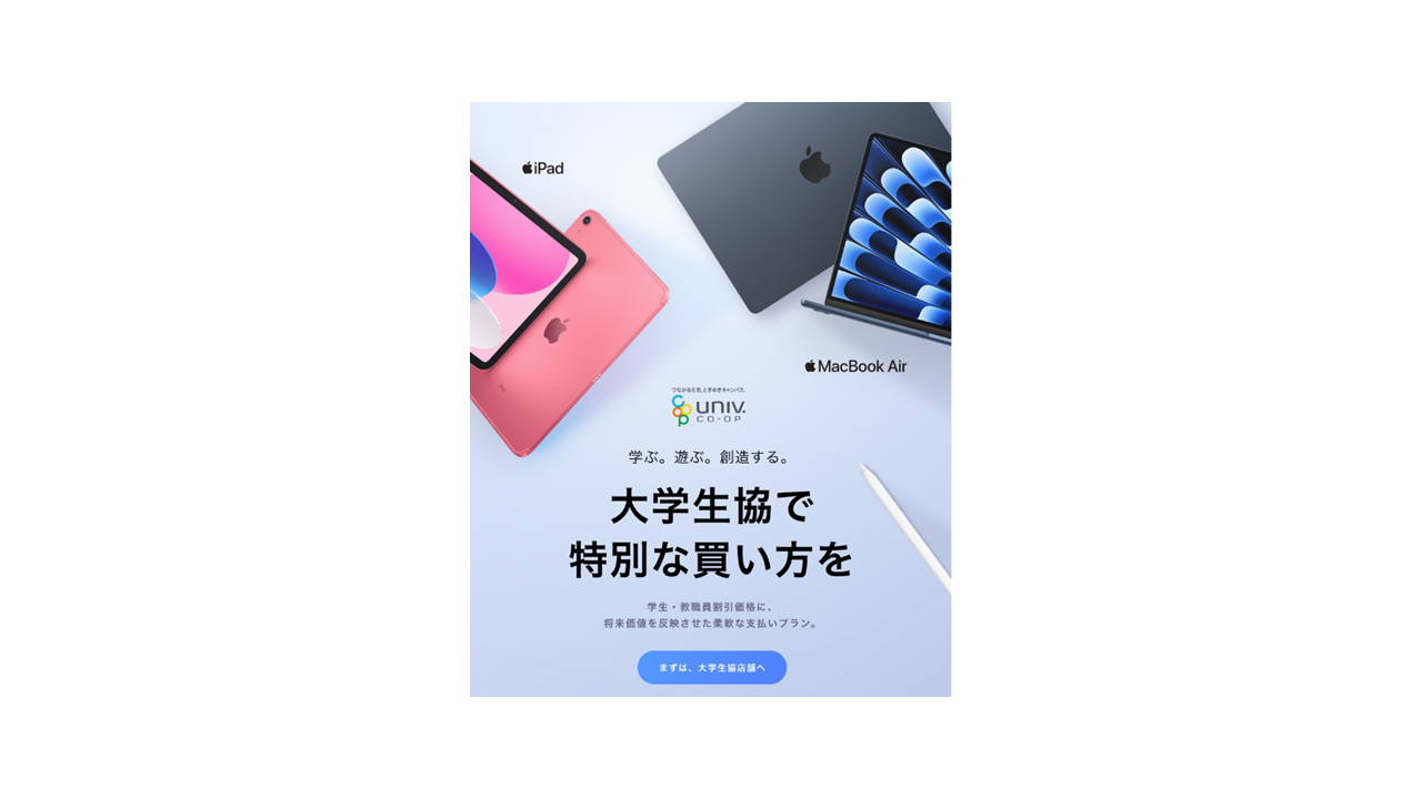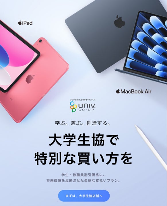 「まなび応援!Apple専用分割プログラム」を全国の大学生協店舗で提供開始