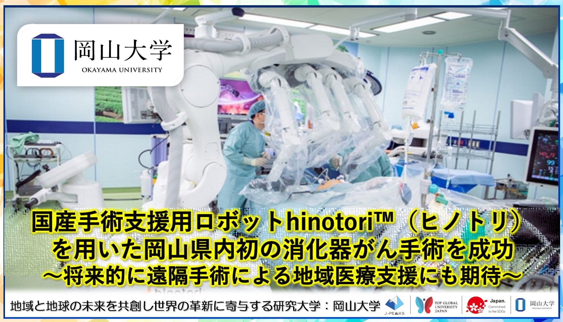【岡山大学】国産手術支援用ロボットhinotori™(ヒノトリ)を用いた岡山県内初の消化器がん手術を成功~将来的に遠隔手術による地域医療支援にも期待~